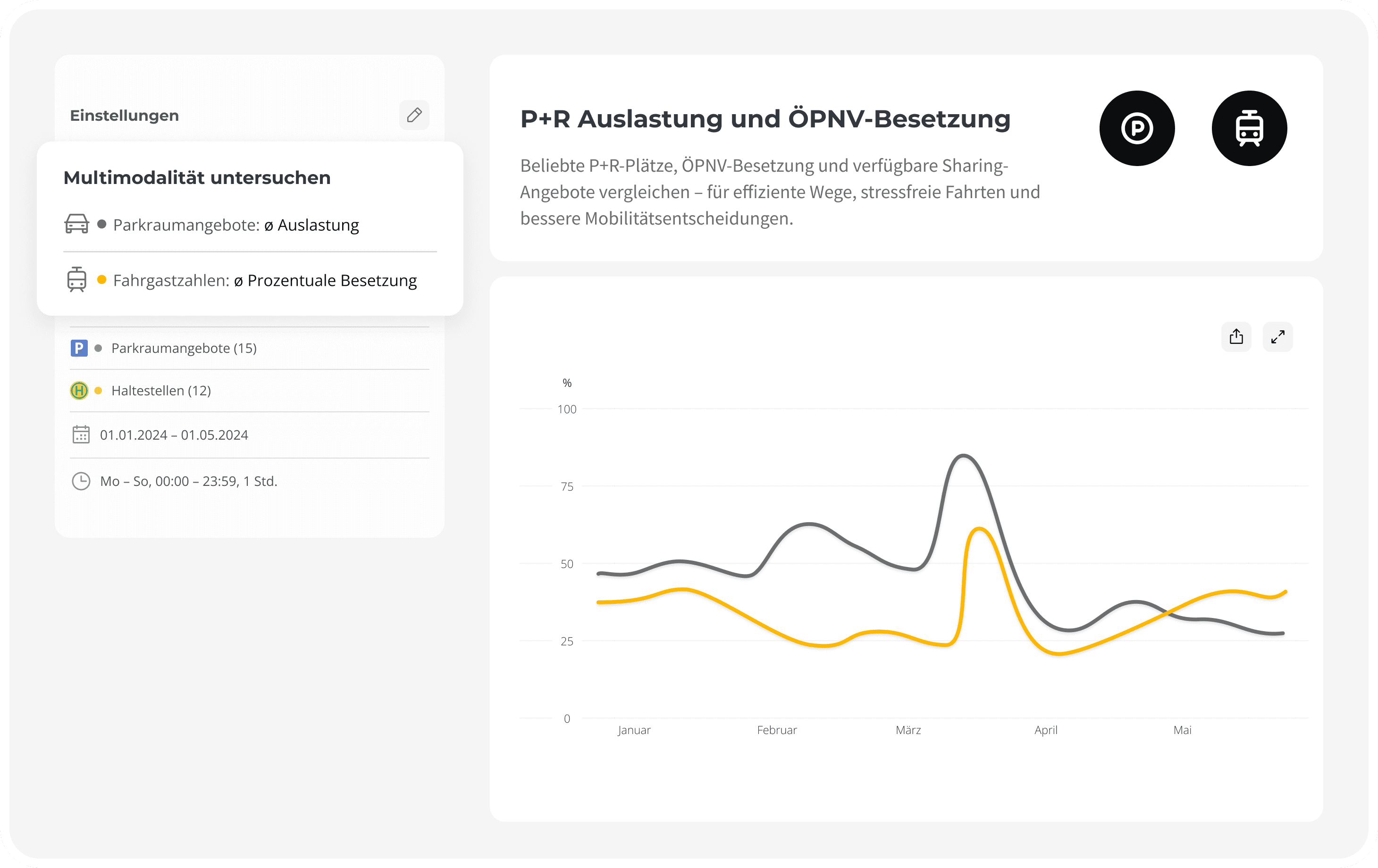 Die Analyse von Maßnahmen und Indikatoren aus Mobilitätsstrategien und Sustainable Urban Mobility Plans (SUMP) sowie relevanten Mobilitätsdaten liefert eine verlässliche Grundlage, um Entwicklungen zu bewerten und die Wirkung von Maßnahmen transparent darzustellen.